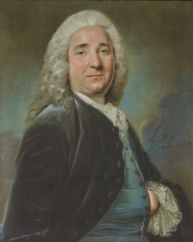 (Paris 1715 – Paris 1767) Portrait de monsieur du Chastellier Pastel sur papier marouflé sur toile 75 x 60 cm Signé et daté L.Vigé pinxit 1744 Cadre d‘époque Louis XV Encadré : 95 x 80,5 cm Provenance : Colonel Gustave Poterat de Billy (1840-1924) (étiquette ancienne au revers de la toile « Colonel de Billy ») ; Collection particulière,…